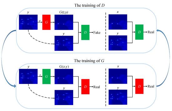 where denotes the mean value. In order to enhance the controllability of G in Equation (2), an additional message y was introduced in Reference [14] that can be accomplished by simultaneously introducing y into G and D. The objective function in Equation (2) can be modified as follows: