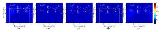 Depending on the ratio of coherent power to the pixel with the incoherent power, a coherence factor, a phase coherence factor (PCF), and a sign coherence factor were designed to weigh images for suppressing multipath ghosts [10,11,12]. These methods have poor suppression performances for well-focused multipath ghosts in the case of synthetic aperture imaging. Moreover, the methods based on these coherence factors and the aforementioned AD feature enlarge the energy differences between target images, which makes it difficult to identify degraded targets with a low signal-to-multipath-clutter ratio (SMCR).
