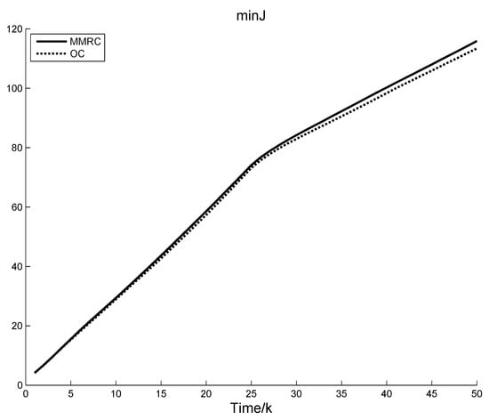 Figure 5 demonstrates that only in the second stage is there a certain deviation between the performance index of MMRC and OC. These phenomena are due to two aspects. One is the switching of control law between multiple models, the other is the pursuit of control objective. Notice that it is an inevitable cost for MMRC.