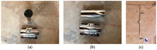 Metallic screen to protect external sensors from environmental conditions (a); (b) metallic screen; (c) application of the screen on the wall (photos by E. Lucchi).