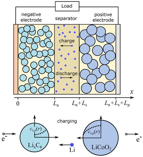 - Guo, M.; Sikha, G.; White, R.E. Single-particle model for a lithium-ion cell: Thermal behavior. J. Electrochem. Soc. 2011, 158, A122–A132. [Google Scholar] [CrossRef]