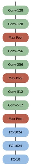 The specific topologies used for the MNIST, SVHN and CIFAR-10 datasets are reused by many of the papers that follow [1,21]. Instead of processing the MNIST dataset with convolutions they used 3 fully connected (FC) layers with 4096 nodes in the hidden layers. For the SVHN and CIFAR-10 datasets, they use a VGG-like topology with two 128-channel convolutional layers, two 256-channel convolutional layers, two 512-channel convolutional layers and three fully connected layers with 1024 channels for the first two. This topology has been replicated by many works based on BNNs. BNN topology is discussed in detail in Section 7.2.