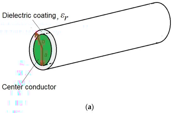 The Goubau line, as shown in Figure 1a, is assumed to be a straight Goubau line. The radii of the dielectrically coated Goubau line and its center conductor are respectively a and b. The relative permittivity of the dielectric layer coating the center conductor is . Then the group velocity of a surface electromagnetic wave can be computed from the propagation constant using the modified version of the approximation formula proposed by Jaisson [15]: