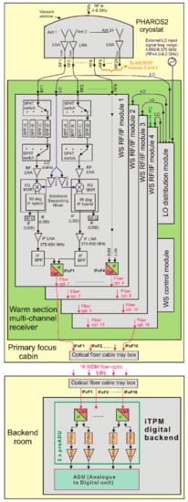 A block diagram of the PHAROS2 system is illustrated in Figure 2. The Warm Section (WS) is the signal chain section located between the cryogenically cooled PHAROS2 antenna array and the digital beamformer that will enable first-ever radio astronomy observation in C-band with a phased array feed. PHAROS2 features the following:
