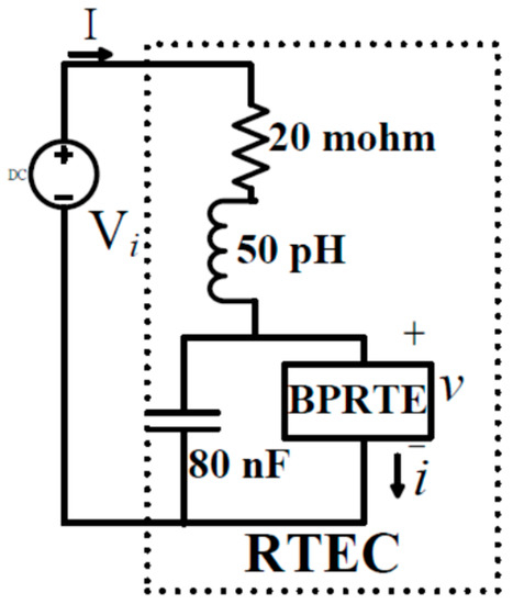 As shown in Figure 4, after the simulation of optimized NDR characteristic was finished, the optimum single PVCDR RTEC equivalent circuit with RS, Cp, and LS of 20 mΩ, 80 nF, and 50 pH respectively was constructed. The optimum single PVCDR NDR curve was characterized with PCD and PVCDR values of 1.35 A and 6.75 respectively. The external resistance (RS), external capacitance (Cp) and external inductance (LS) values in designs of double PVCDR RTEC and triple PVCDR RTEC structures were also decided using the same simulating method to obtain the optimum external PCD value and using the same calculation method to obtain the optimum PVCDR value.