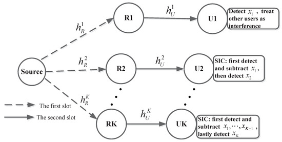 For each receiver, successive interference cancellation (SIC) is utilized to remove the interference and implement the accurate signal detection. Specifically, for the kth user, the manipulation of SIC is to successively detect the signals and subtract them from the received signal. The signals of the remaining users are treated as interference.