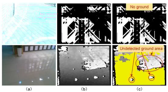 where F is the point cloud of the detected ground, H is the ground height, are the plane parameters defined in Equation (4), and is a constant for preventing the person from being collided with overhanging obstacles.