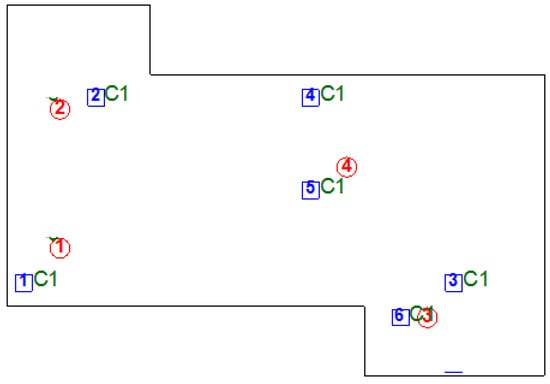 After having run an optimization instance, the proposed algorithm generates the positions of six decoupling capacitors as indicated in Figure 16.