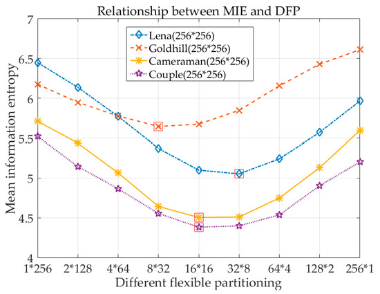 Effect of different partitioning methods on mean information entropy (MIE) of images (the abscissa represents flexible partitioning with shape ).