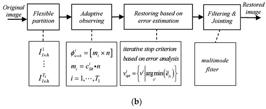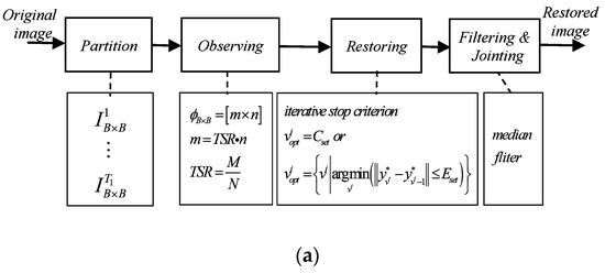 - Li, R.; Cheng, Y.; Li, L.; Chang, L. An adaptive blocking compression sensing for image compression. J. Zhejiang Univ. Technol. 2018, 46, 392–395. [Google Scholar]