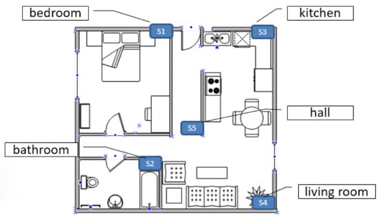 Indoor Location Systems (ILS) are defined as the technological infrastructures (hardware and software) that allow tracking assets and persons across indoor settings. The setup and type of technology used to track elements depend on the type of applications, elements to track and deployment characteristics. There is a wide range of technologies such as RFID [], Bluetooth [] and ZigBee [] among others. Such systems have been previously used to support the activity recognition of humans in smart homes [], AAL solutions [] and the design of activities primitives []