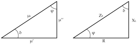 where R corresponds to the equivalent resistance and XL is the impedance of the inductive part of the sleeve ferrite core. The vector relationship between impedance and permeability components is shown in Figure 4.