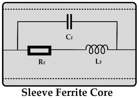 Although the permeability parameter is used to describe the behavior of the core material, the performance of a certain sleeve ferrite core takes into account, besides the material features, other variables such as the self-inductance defined by the dimensions and the shape. Thereby, sleeve ferrite cores are usually defined and classified through specifying the magnitude of the impedance (ZF), which is obtained from the equivalent component parameters such resistance (R) and inductance (L) [4,27]. The magnitude of the impedance is given by: