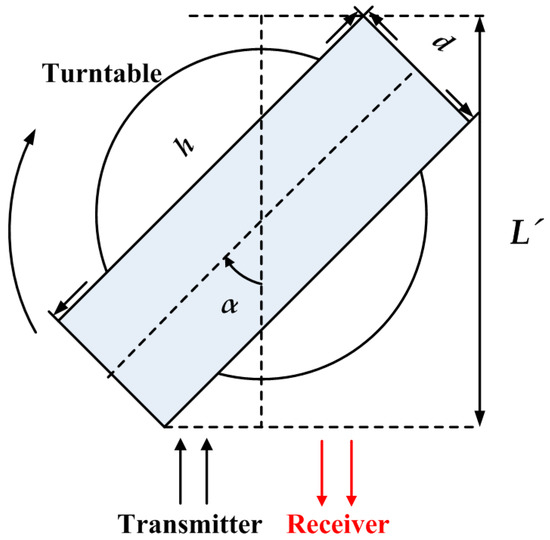 Comparing to traditional range gates, the dimension of adaptive range gates varies according to the angle-dependent target zone to precisely capture the echoes from the target and improve the SNR in RCS measurements. Figure 2 illustrates the schematic of the adaptive range gate. The rectangle with sides h and d represents the target area according to its characteristic dimensions and α is the aspect angle. The projection dimension in radial direction L’ and the size of the time-domain window for adaptive range gate M’ can be expressed as follows: