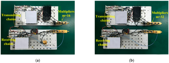 The radar cross-section (RCS) of a target is an important physical quantity that characterizes its capability of reflecting electromagnetic waves. The RCS is a physical quality of high complexity. It is related to not only the geometrical parameters and physical parameters of the target, such as the size, shape, material, and structure, but also the parameters of the incident wave, including the frequency, polarization waveform, etc. [1,2]. High-quality RCS data are strongly required for programs such as high-range-resolution profiling (HRRP) and synthetic aperture radar (SAR) imaging. Commonly, two different approaches are implemented in RCS measurements. One is to measure the RCSs of the full-size objects; the other is to measure the RCSs of scaled models and calculate the RCSs of the objects according to the law of electromagnetic similarity. These two approaches have their respective pros and cons [3,4]. Direct full-size measurements can be easily arranged for targets with moderate sizes within appropriate test sites. However, in terms of large objects, this method will become costly or even impossible owing to the requirement in large test-field and long measurement distance. In contrast, scaled measurements for large prototypes can be carried out in anechoic chambers; while this method requires radar systems with high-performance transceiver links and high operation frequencies. Therefore, obtaining RCS data in the terahertz (THz) band is of great significance for scaled measurements. In recent years, owing to the growing demand in RCS scaled measurements of large objects and producing vehicles with reduced RCS in the terahertz range, the development of THz RCS measurement systems has attracted increasing attention [5,6]. In accordance with the approach of THz wave generation and detection, various types of THz RCS measurement systems have been constructed, including THz laser-based systems, THz time-domain spectroscopy (THz-TDS)-based systems and solid-state THz systems [7,8,9,10].