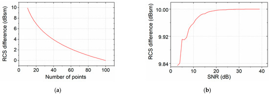 Comparison of RCS difference under two circumstances. (a) The variation of RCS difference with the size of the adaptive range gate, (b) the variation of RCS difference with SNR.