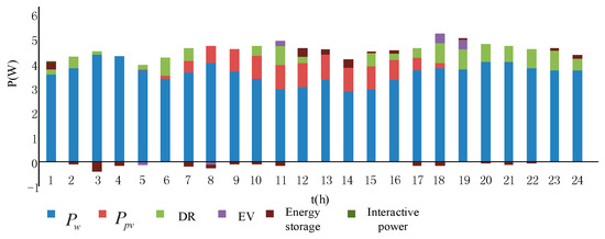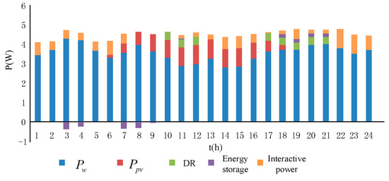 The optimal scheduling scheme of the distribution network for when the EV does not participate in the optimal scheduling of the distribution network is shown in Figure 8.