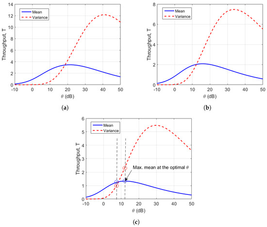 Assuming a fixed transmission rate of , a packet can only be decoded at the intended receiver if . Hence, the throughput was expressed as . In this section, we analyze the impact of the parameter on the spatially-averaged throughput and its variation across all the links. The optimal that maximized the mean throughput was first derived. Then, the variance of throughput could be obtained via Theorem 1.