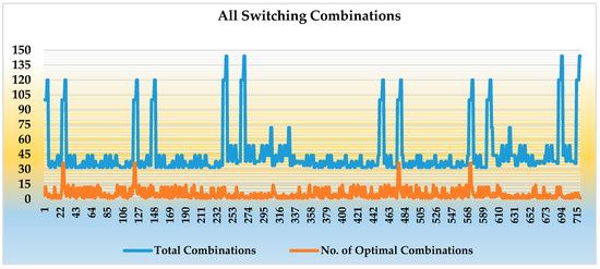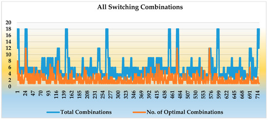 Number of total and optimal switching combinations in un-optimized HCROS.