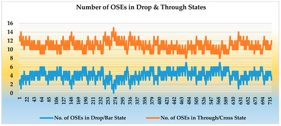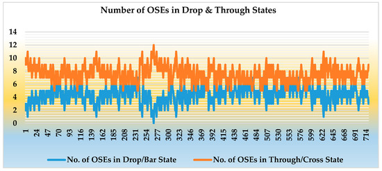 The number of OSEs in drop/bar and through/cross states in optimal switching combinations for un-optimized HCROS is shown in Figure 8, where it can be observed that at the 270th permutation index for the SC3 I/O link, the maximum of 15 OSEs are found in through/cross state while no OSE is found in a drop/bar state.