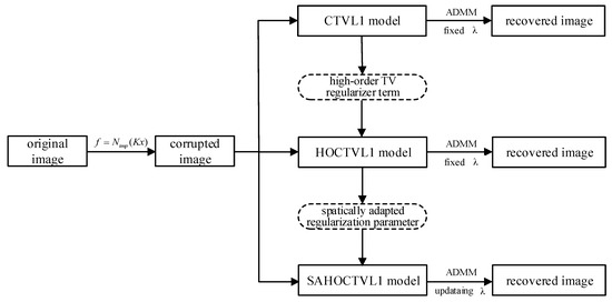 Figure 1 shows the diagram of image restoration. In this paper, two models named HOCTVL1 model and SAHOCTVL1 model are proposed and are used to recover the corrupted images.