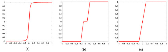 Figure 2 shows the characteristics of , and . In TVL1 model, the regularization term is to enforce certain regularity conditions or prior constraints on the image, and the data fitting term penalizes the deviation of the observed data from the physical model. According to the analysis in Section 2 of [24], these three functions can all enforce less or even null data fitting and more regularization whenever deviates significantly from . However, in the experimental simulation, it is found that the experimental results are almost the same no matter which function is selected. Therefore, in this paper, the scalar function still chooses .