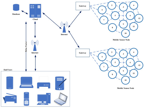 An IoT-based sensor network depicting a “delay factor” in the communication between cloud server and end users.