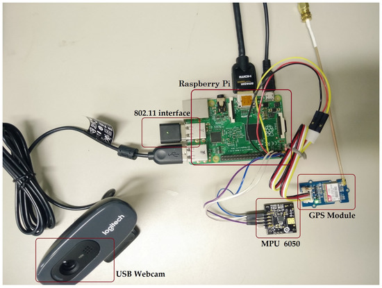 Figure 6. The mechanism of accident detection and emergency alert.When an accident is reported for an emergency service to a hospital, it dispatches an ambulance to the reported location quickly. Because of the incomplete information of the exact situation of the victims and lack of information regarding the number of injured persons, the paramedic staff may find it difficult to make any judgment regarding the first aid services. Instead, the additional information of a specific calamity, a better emergency medical service along with advanced technology support, first aid kits, tools, and medicines can be sent to the victims. Additionally, it would assist with providing timely help to the victims. To cope with it, a high-definition (HD) camera is integrated into the proposed system to capture the instant when the accident occurred. A Logitech HD Universal Serial Bus (USB) C270 Webcam that is capable of capturing 720 pixel, 30 (frames per second (fps)) wide-screen images [18] was used. - Tier 2: IoT Gateway All of the smart devices are mounted on-board deployed inside the vehicle; therefore, it is more hands-on to handle and process the recorded data at the Edge. In this case, the Edge node is closer to the source of data-generation, rather than at the distant cloud. Additionally, it is not needed to send all the recorded data to the cloud, but just the refined data can be sent, thereby saving network bandwidth. Data packets traversed via relay vehicles in a multi-hop ad hoc network, connecting a Wi-Fi module of an OBU inside the vehicle to other vehicles in the neighborhood. Additionally, this communication is facilitated by an IEEE 802.11n Wi-Fi USB dongle in ad hoc mode. After traversing the whole path leading to the Edge node, the sent data shall be received at the gateway. The IoT node will then perform various tasks assigned to it, i.e., the segregation of received data to extract the useful information, storage of the associated picture, and forward transmission of the processed data. These are further conferred as follows: