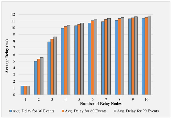 Comparison of delay with an increasing number of relays.