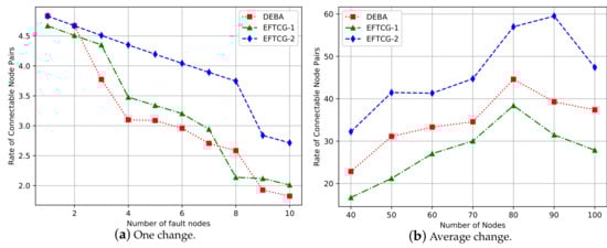In this section, fault-tolerant analysis is carried out for the EFTCG-1, EFTCG-2, and DEBA algorithms. The fault nodes are randomly generated in sequence, and the maximum number of fault nodes is 10 in this simulation experiment.