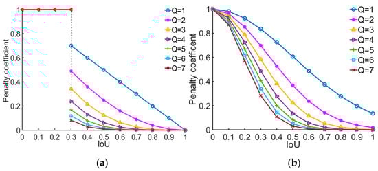 Optimizing NMS can improve the performance of occluded vehicle detection. Bodla et al. [32] proposed a Soft-NMS algorithm with a penalty coefficient, which does not need to retrain the original model and can be easily integrated into any object detection algorithm using NMS, reducing the missed object detection rate. Zhao et al. [33] applied Soft-NMS to object detection, including vehicles, and proved that compared to NMS, the detection accuracy of the optimized Faster R-CNN could be improved by 1%–2% on the PASCAL VOC 2007. However, the above methods have a shortcoming: Soft-NMS is an optimized NMS algorithm by introducing the penalty coefficient of linear and Gaussian weighting, but it does not consider the impact of optimizing the penalty coefficients.