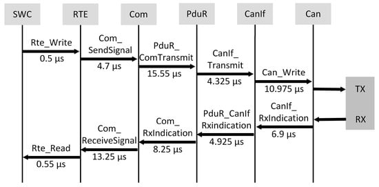 AUTOSAR controller area network (CAN) communication stack latency in each layer.
