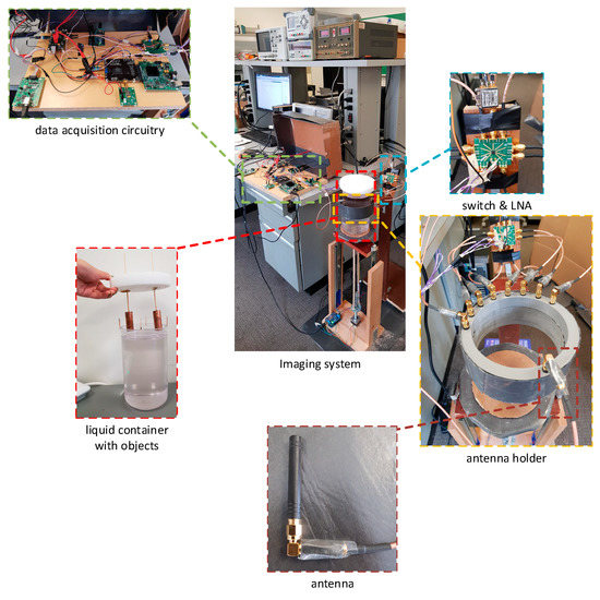 Figure 15 shows the imaging system along with the zoomed view for the main components that will be described in the following. To reduce electromagnetic interferences (EMI), the data acquisition circuitry and the scanning setup are placed inside boxes covered by microwave absorbing sheets.