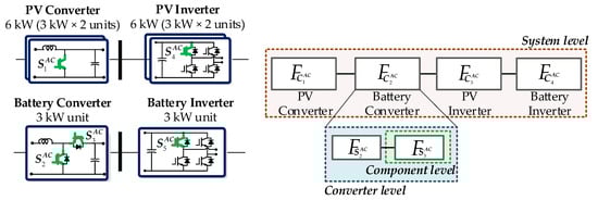 In order to analyze the operational impact on the component reliability, a power converter loading during a typical one-day operation of the PV-battery system is studied. The key target is to investigate the difference in the electrical and thermal loading of the components in the two configurations. In general, power converter loading is directly related to the thermo-mechanical stress of its components such as power devices, and it is the cause of the component’s failure, reflecting the reliability of the system [17].