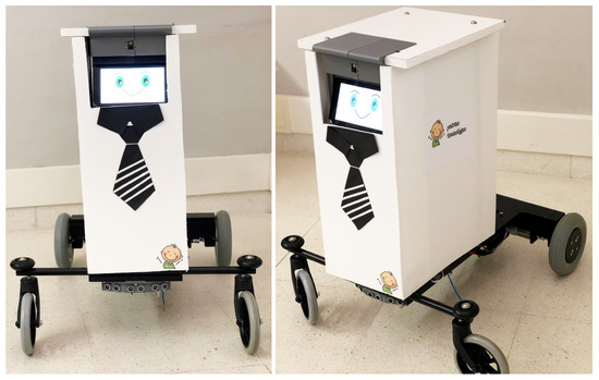 As a base for the fall detection approach, we used the assistance robot LOLA, designed entirely by our research team to monitor and help the elderly and any other person with a functional disability who lives alone. The main idea behind the LOLA robot was to be an assistive robot that could also work as a rollator for helping to walk or as a table to transport objects due to its shape—80 cm height, 58 cm width and 70 cm depth (Figure 2).