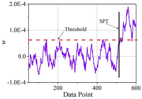 The threshold method was used to determine the SPT point in this paper. When the rolling bearing is abnormal, the overall trend of the RMS is increased. However, due to the influence of random factors, the RMS leads to positive and negative changes. Therefore, the threshold value is established by the absolute value of w. The average and standard deviation of the absolute value of w are calculated from the normal operation data of the rolling bearing: