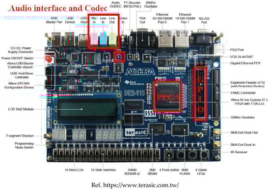 - Altera DE2-115 Development and Education Board. Terasic Inc. Available online: https://www.terasic.com.tw/cgi-bin/page/archive.pl?Language=English&CategoryNo=139&No=502 (accessed on 12 July 2019).