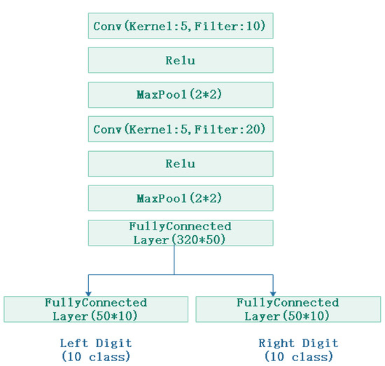 To convert data classification into MTL problem, Sabour et al. stacked a large amount of images together. We used the same structure. For each image, we randomly selected a different image, and then placed one of these images on the upper left and the rest on the bottom right. The result is as follows: classify the data in the upper left and classify the data in the upper right. The 60 k example was used here and the existing single-task MNIST model was used directly. For the MultiMNIST experiment, we used the LeNet structure [37]. We used all layers (except last layer) as a representation function (or a shared coder). By simply adding two fully connected layers, we could treat the fully connected layer as a function of the task-special for all tasks, and each output of the representation function was taken as an input.As a loss function for a task-special, we used a softmax cross-entropy loss for both tasks. Figure 2 shows the structure.