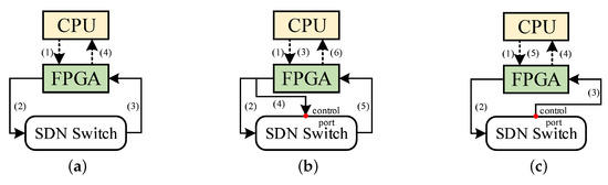 Based on this “bypass” mechanism, each module only processes the packets associated with itself and does not affect the unrelated packets. Although physically a hardware pipeline, it can be logically abstracted into multiple parallel pipelines to support different testing functions [21]. Therefore, in the same pipeline, we can not only perform different processing operations on packets (e.g., traffic generation and monitoring for packets) but also process different packets (e.g., the control plane packets and the data plane packets) at the same time. All modules in the same pipeline are based on the same time basis, so that the problem of clock synchronization between the control plane and the data plane can be well solved.