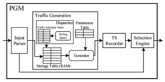 - Packet Generation Module (PGM). PGM is responsible for generating flow according to the pre-defined packet and parameters, including generating rate, time interval and so on. PGM also supports the nanosecond-level timestamps for output packets.