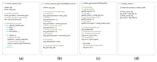 - Traffic Generation. According to the constructed packets and pre-defined parameters, the PGM generates the data plane flow for the tested SDN switch. The operations are the same as the performance test.