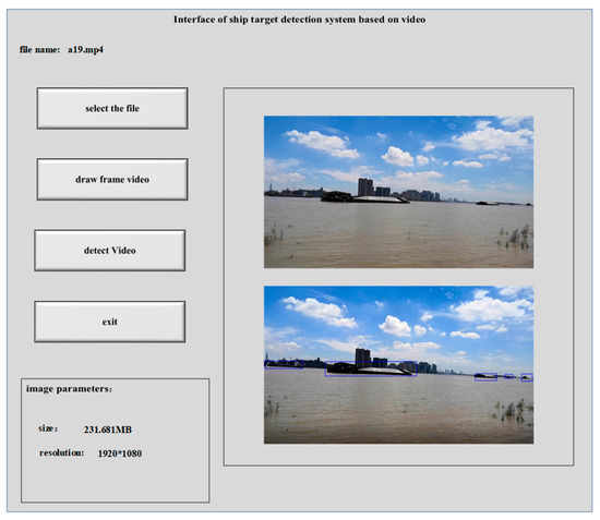 In the present study, the ship target detection system V1.0 is developed by using QT5.3 software. The main applications of this system are to detect the ship target on the inland river, use the real-time image acquisition device to collect the image information and play the real-time picture in the host computer system. Then, utilizing the existing algorithm for information in the picture to detect possible ship targets in the image is the most important part of the system. The system interface is shown in Figure 13.
