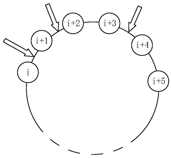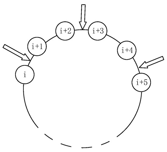 - At time step k, when the information transmitted on edge and is exposed, the eavesdropper can easily utilize the obtained information to predict the state of node 1 at time step , denoted as , which does not contain the offset . According to the information transmitted from node 1 to node 5 at time step , , the eavesdropper can further obtain the injected value which equals . The eavesdropper can derive the injected value at each step, then the initial state of node 1 can be deduced after several interactions.