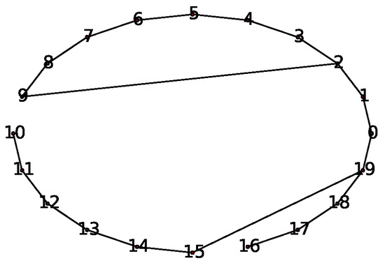 When the eavesdropper only attacks two edges, it means only two variables in are nonzero numbers. The eavesdropper has many choices, for example, it can attack two adjacent edges, such that and are not zero, we can obtain the probability with the constraint . The eavesdropper can also choose two edges and , then and are not zero, we can calculate with the constraint being . Besides the above two cases, the eavesdropper can also choose two edges and , where , then and are not zero. In this case, we can obtain . Using all the above arguments, it is easy to derive the optimal attacking strategy, i.e., for any i, and the corresponding maximal probability .