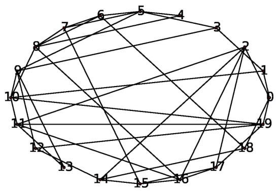 of which the average value of the entries is 51. Matrix is set following the rules in Section 2.1, namely , where L is the Laplacian matrix of the graph in Figure 13 and . For each node i, by setting , We investigate the privacy preserving performance and average consensus convergence of our scheme proposed in Section 2.3 under different distributions and different variances of the random series .