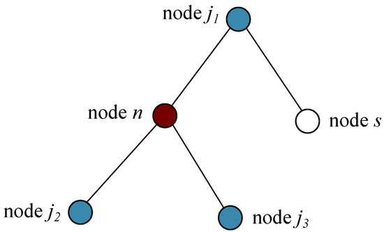 Without loss of generality, we assume that node n infers the initial states of the other nodes in the network. Denote the set of the neighboring nodes of node n as , and define an observation matrix , where represents a vector whose ith entry is 1 and all the other entries are 0. At time step k, the states of the nodes observed by node n is