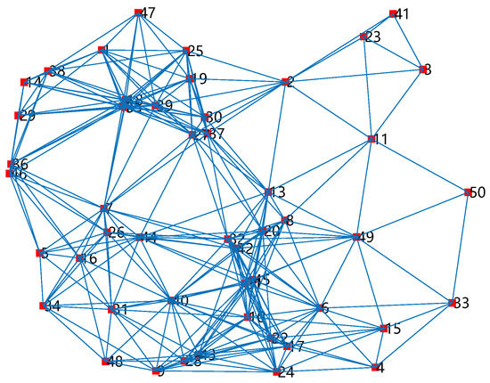 In this subsection, we consider a network consisting of 50 nodes as shown in Figure 13. The real initial state is set as the following vector
