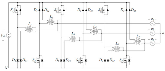 The standard three-phase voltage source inverter (VSI) has been widely used for grid-connected applications [1,2,3]. It has two power switches in same switching-leg that present a shoot-through problem. A dead-time is essentially required for two power switches in same switching-leg to prevent the shoot-through switching state. Dead-time distorts the output waveforms and reduces the pulse-width modulation (PWM) [4]. Even with the dead-time compensation, a shoot-through switching state is the problem of VSI, which reduces the system’s reliability [5].