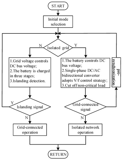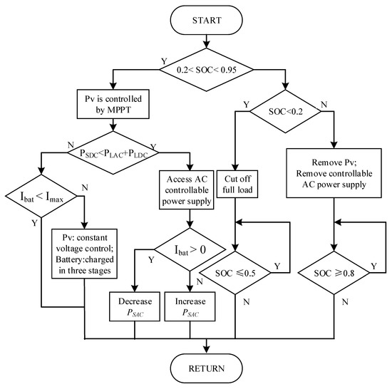 The above conditions are all carried out within the allowable working range of the battery. If the battery capacity exceeds the upper and lower thresholds, the power supply must be cut, or the load must be cut, to ensure that the battery capacity is within the allowable range. The control flow of the SPEER under the isolated network is shown in Figure 14.