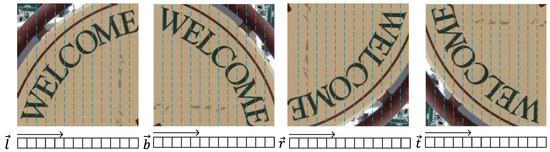 In this work, characters in natural images are represented by multiple perspectives, just like vectors represented by the cross coordinate. Therefore, we use MCN to extract features from multiple perspectives of a BCN feature graph. The MCN network consists of five convolutional layers, and represents the feature graph as a sequential feature. We use the rotator to rotate the feature maps of BCN 90°, 180° and 270°, respectively. MCN and BCN are connected by the rotator, and MCN can get the four direction feature sequences. As shown in Figure 5, the four direction feature sequences represent four directions: left → right, bottom → top, right → left, and top → bottom. Multidirectional feature sequences can be represented as follows: